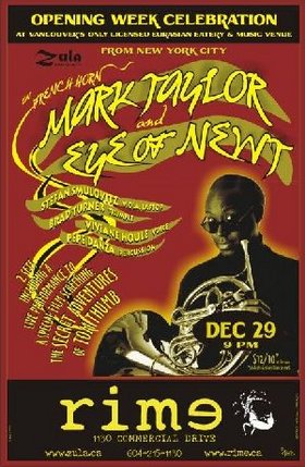 Zula Productions presents from New York City, jazzman, French hornist, composer, improviser Mark Taylor (of Henry Threadgill's Very Very Circus fame) with Vancouver's eye of newt which includes Stefan Smulovitz (viola, laptop), Brad Turner (trumpet), Viviane Houle (voice), Pepe Danza (percussion, shakuhachi), perform live to a special screening of "The Secret Adventures Of Tom Thumb" & a second set of original music.