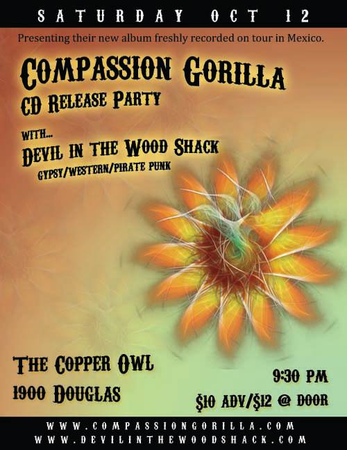 In April of this year Compassion Gorilla had the awesome opportunity to record a new CD while on tour in Mexico. Our good friend, musician and excellent recording engineer, Thomas Martin recorded, mixed and mastered "Colibrís en Vuelo" in San Cristobal, Chiapas. We are grateful for his work and input, as well as that of our friends from the road who graciously contributed their talents to the project (Nico del Pan, percussion; Aaron Soloman, guitarron; Marco Ghezzo, violin).