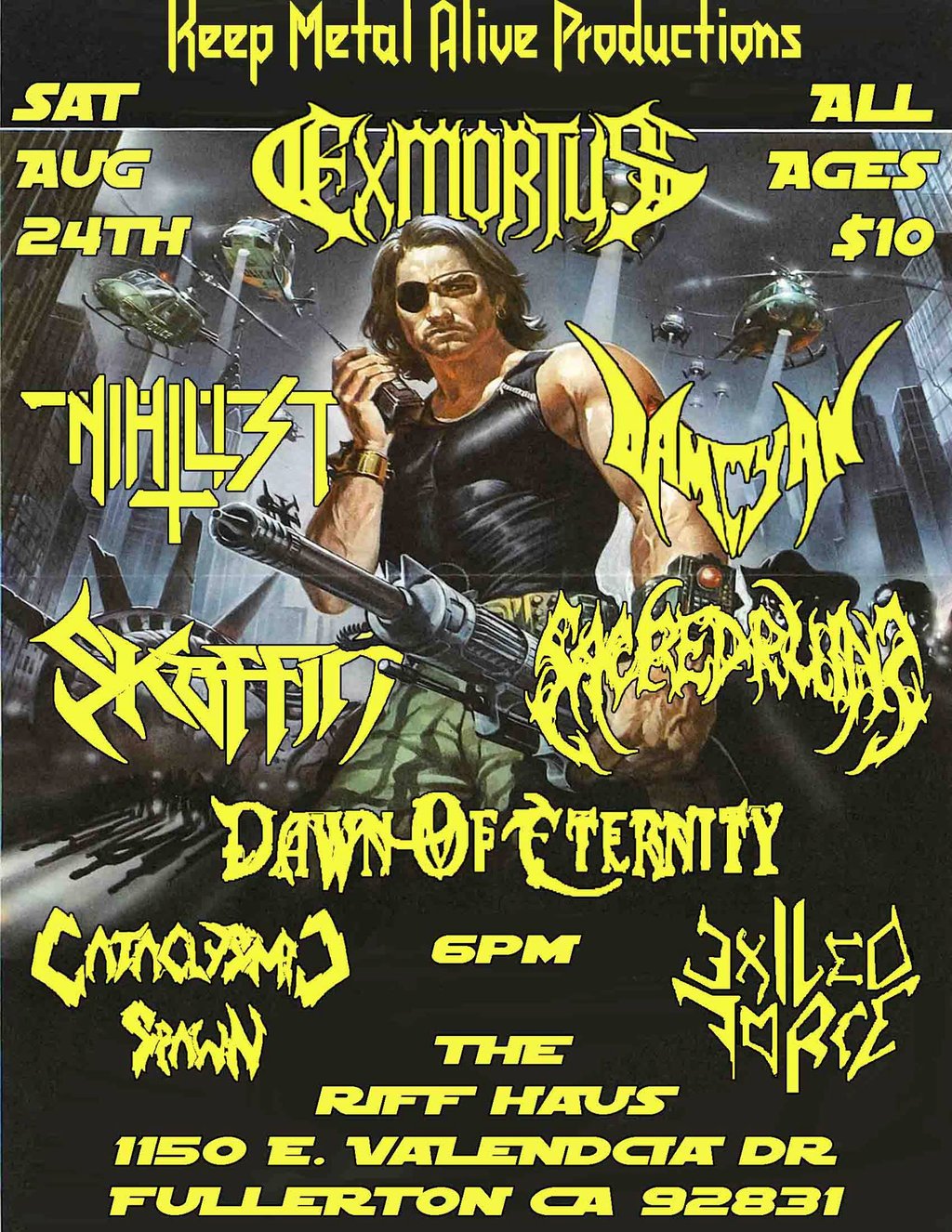 Exmortus, Exiled Force, Nihilist, Damcyan, Skoffin, Sacred Ruin, Dawn of Eternity, Cataclysmic Spawn @ The Riff Haus Aug 24 2013 - Feb 26th @ The Riff Haus