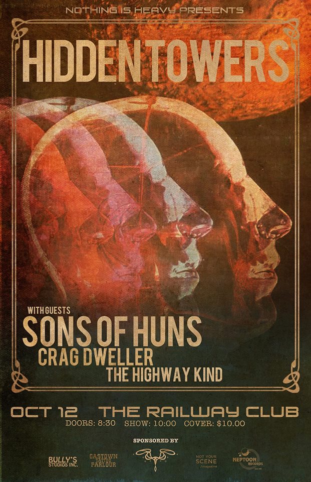 Hidden Towers, Sons Of Huns, Crag Sweller, The Highway Kind  @ Railway Club Oct 12 2013 - Feb 8th @ Railway Club