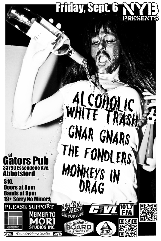 Alcoholic White Trash, The Gnar Gnars, The Fondlers, Monkeys in Drag @ Gator's Pub Sep 6 2013 - Feb 24th @ Gator's Pub