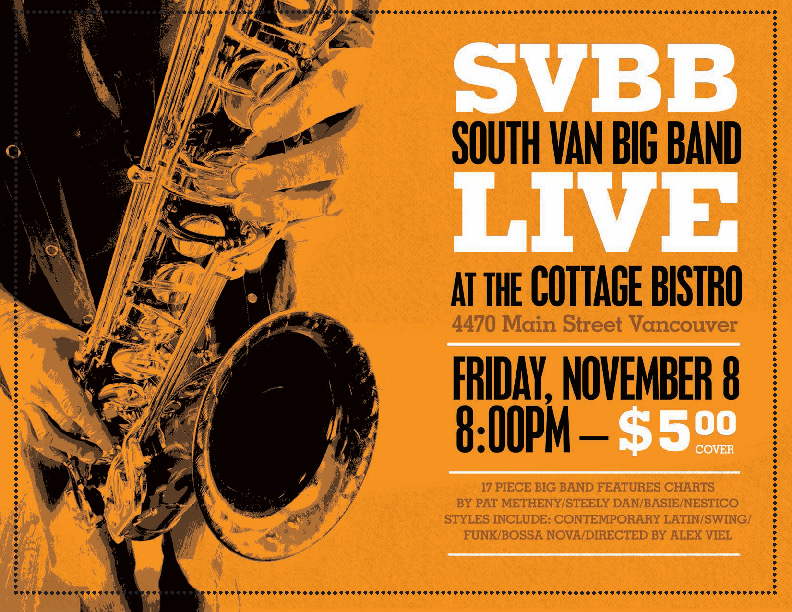 South Van Big Band @ Cottage Bistro Nov 8 2013 - Feb 3rd @ Cottage Bistro