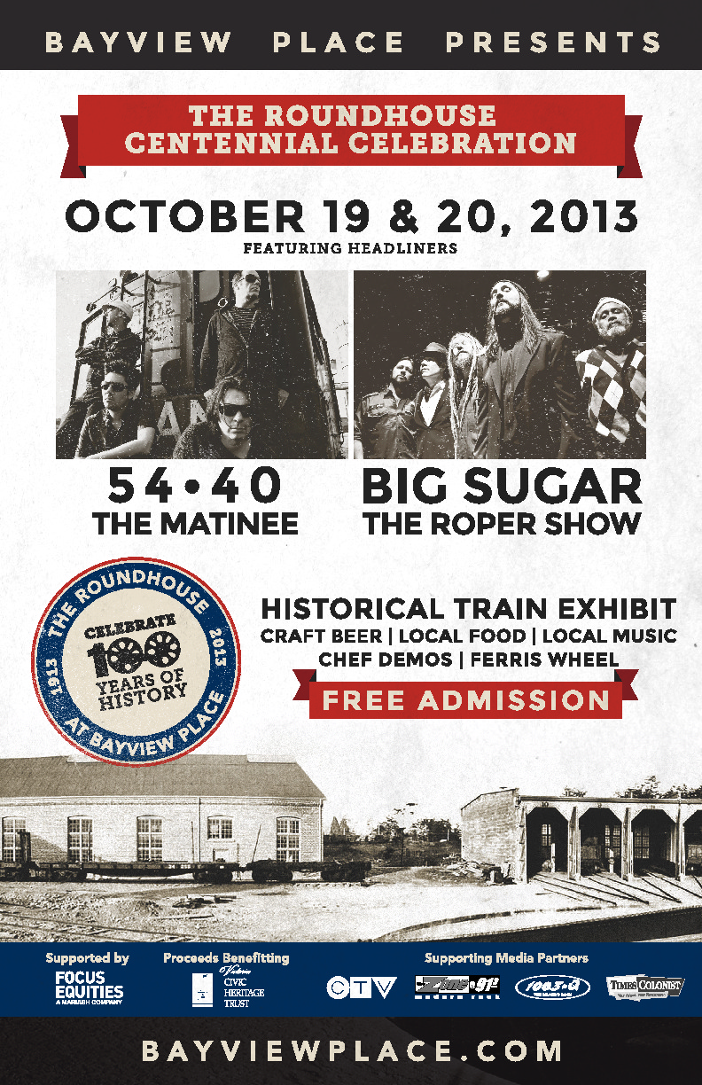 On October 19th and 20th Bayview Place is presenting a celebration of 100 years of locomotion history at the historic Roundhouse site in Victoria. The Bayview Place Roundhouse Centennial is a free event welcoming the public to celebrate the history of the old rail yard. Running from noon to 10pm on Saturday the 19th and noon to 6:30pm on Sunday the 20th, the celebration will feature live music, craft beer and wine, local food, as well an interactive train exhibit and Ferris wheel for the whole family.