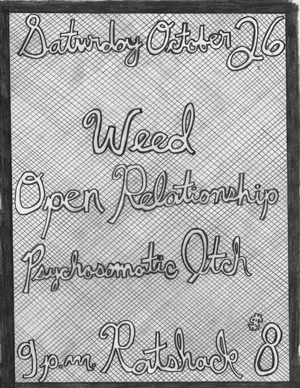 Weed, OPEN RELATIONSHIP, PSYCHOSOMATIC ITCH @ the ratshack Oct 26 2013 - Feb 3rd @ the ratshack