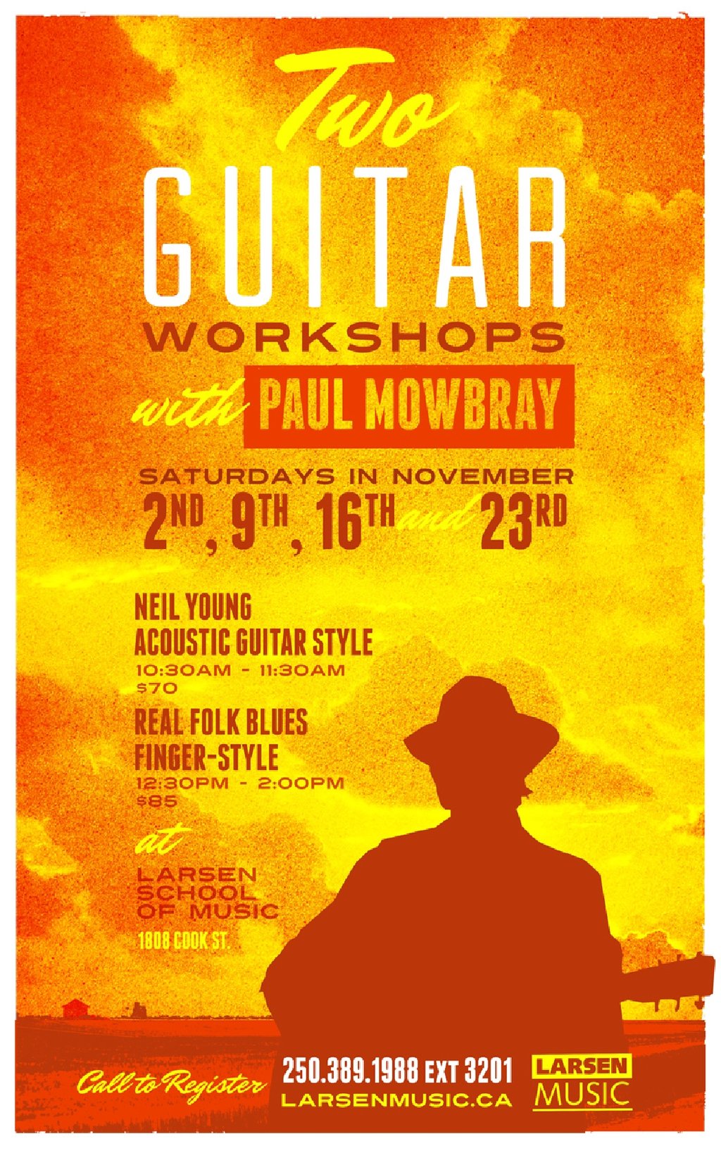 Players should be comfortable with basic open position chords and strumming in 4/4 time. Paul ensures that all students, of all levels, have plenty of material to learn and take home to work with. Intermediate to advanced students will enjoy the challenge of mastering these great guitar songs.