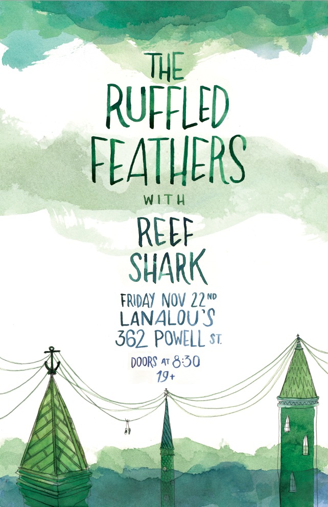 The Ruffled Feathers are known for their combinations of haunting female vocals, carefully crafted harmonies, multi-instrumentation, and brazen horns. Taking inspiration from the likes of Beirut, The Arcade Fire, and Belle and Sebastian, the band weaves fables of revolution, love stories, and cities away from home. Listeners expecting convention guitar-driven indie-pop will find themselves swept into complex arrangements of trumpets and mandolins instead.