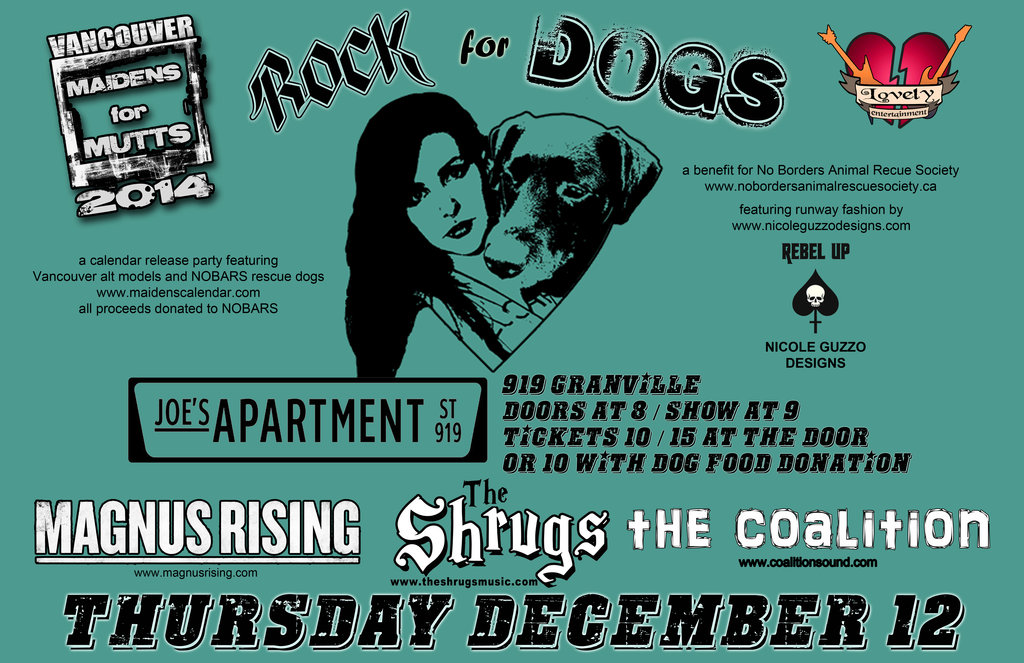 A fundraising event to benefit the No Borders Animal Rescue Society as well as a calendar release party featuring rescue dogs and models wearing Nicole Guzzo Designs brand REBEL UP which will also be featured on the runway.