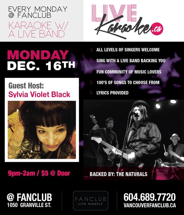 LIVE KARAOKE MONDAYS AT FANCLUB. w/ SPECIAL GUEST HOST SYLVIA VIOLET BLACK