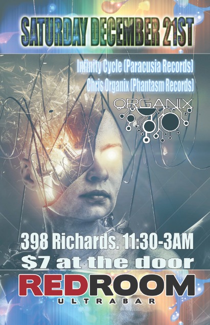Winter Solstice (Special Organix Saturday) with: Infinity Cycle   (Paracusia Records), Chris Organix (Phantasm Records, ANGEL  (Orgnanix), Deco - Serotonin  @ The Red Room Dec 21 2013 - Jan 17th @ The Red Room