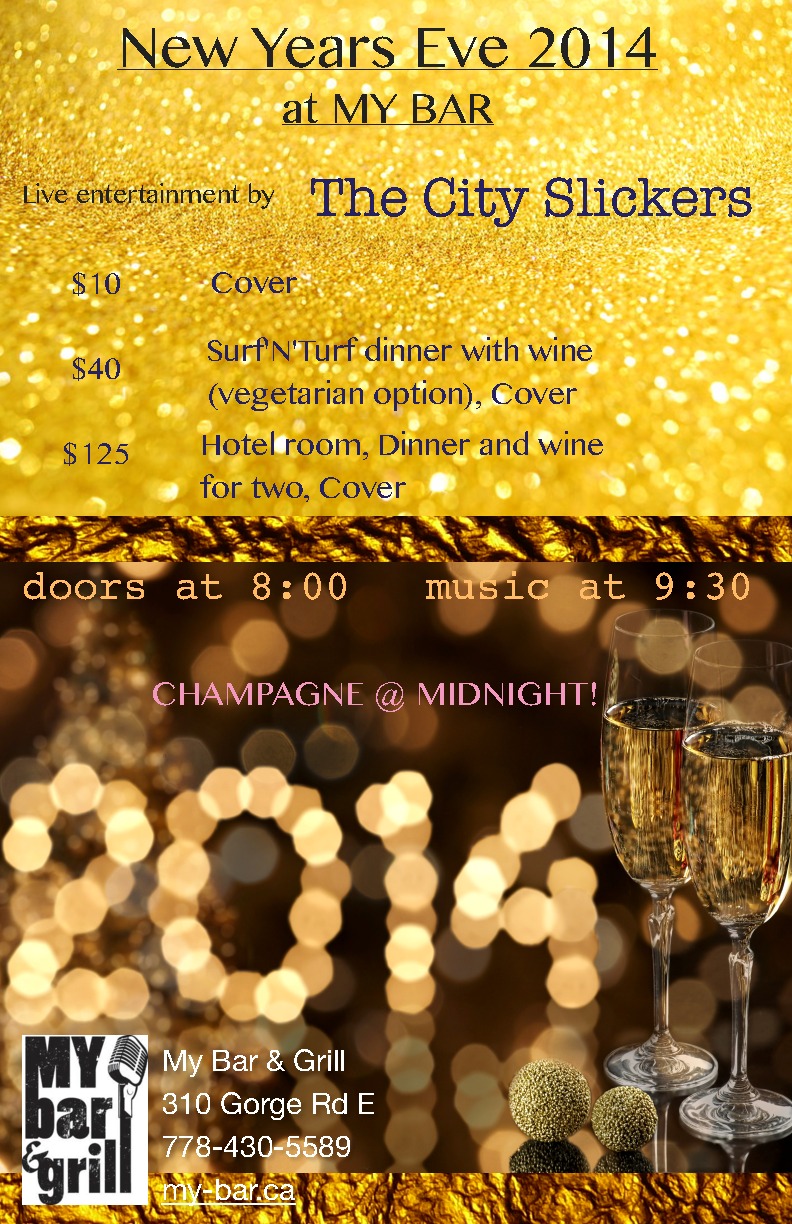 NEW YEARS BASH and Dinner: City Slickers @ My Bar and Grill Dec 31 2013 - Mar 17th @ My Bar and Grill