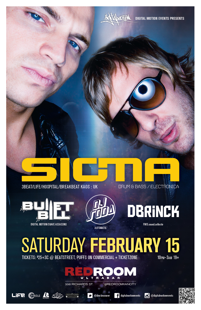 SIGMA  (UK), Bullet Bill , DJ SODA, DBrinck @ The Red Room Feb 15 2014 - Nov 10th @ The Red Room