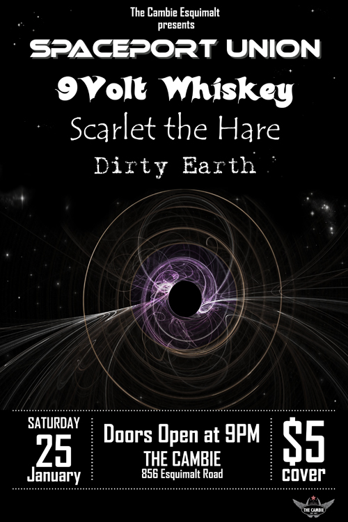 Spaceport Union, 9Volt Whiskey, Scarlet The Hare, Dirty Earth @ The Cambie at the  Esquimalt Inn Jan 25 2014 - Jan 16th @ The Cambie at the  Esquimalt Inn