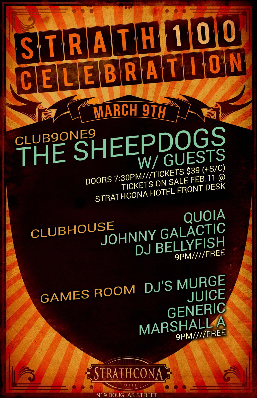 THE SHEEPDOGS will be performing at Club 9ONE9 for The Strath 100 Celebration on Sunday, March 9, 2014.
