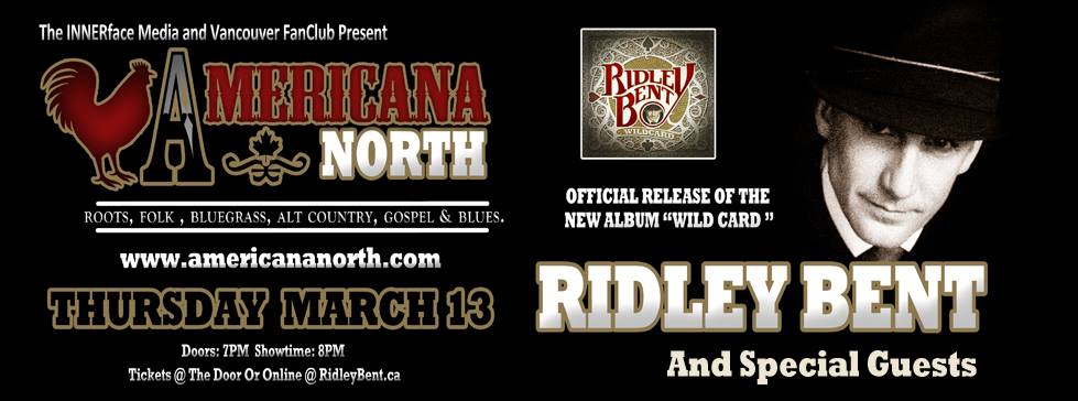 Ridley Bent will perform songs from his newest release "Wildcard" at Vancouver FanClub. Join us for an evening of Americana with Ridley Bent and his amazing band for what will be his official CD release show.