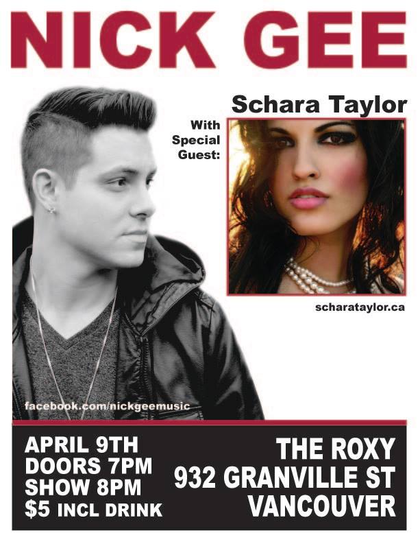 Magnetized Productions Presents: Nick Gee with guest Schara Taylor. Wednesday, April 9th @ The Roxy,