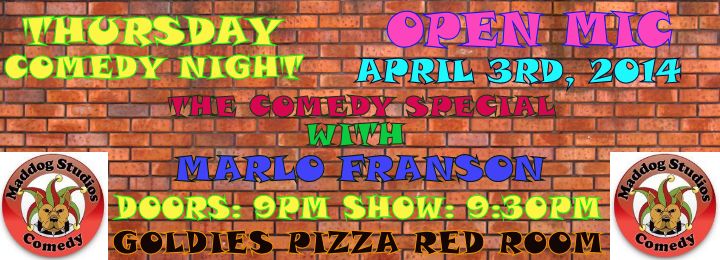 MARLO FRANSON FEATURES OPEN MIC COMEDY THURSDAY NIGHT AT MADDOG STUDIOS! @ Goldie's Pizza Apr 3 2014 - Jan 16th @ Goldie's Pizza