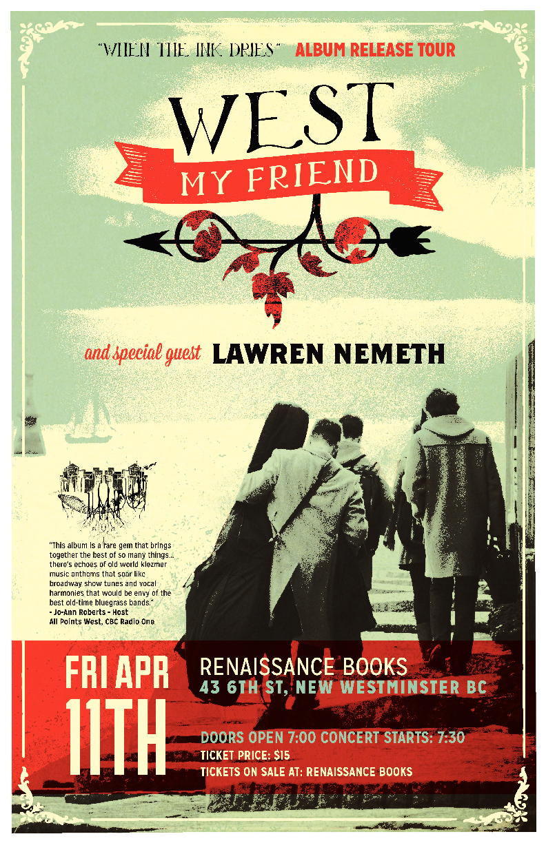 When The Ink Dries Album Release Tour!: West My Friend, Lawren Nemeth @ Renaissance Books Apr 11 2014 - Jan 18th @ Renaissance Books