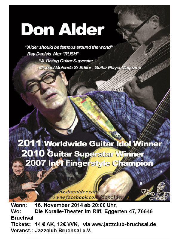 Fingerstyle & Harp Guitar: Don Alder @ Die Koralle - Theater im Riff Nov 16 2014 - Dec 26th @ Die Koralle - Theater im Riff