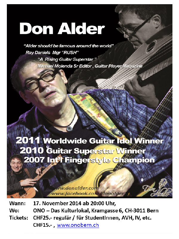 Fingerstyle & Harp Guitar: Don Alder @ Ono - Das Kulturlokal Nov 17 2014 - Dec 26th @ Ono - Das Kulturlokal