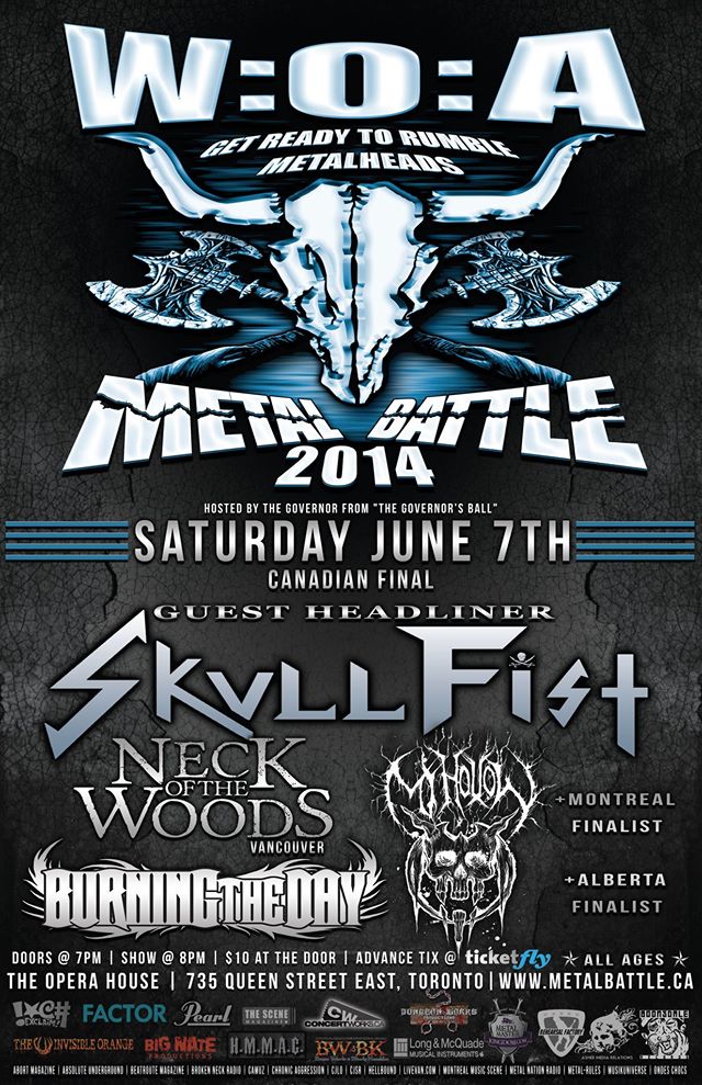 WACKEN METAL BATTLE TORONTO NATIONAL FINAL ft: Skullfist (Special Guest Headliner), Neck of the Woods (Vancouver), Exit Strategy (Alberta), My Hollow (Toronto), Burning the Day (Toronto), Mutank (Montreal)