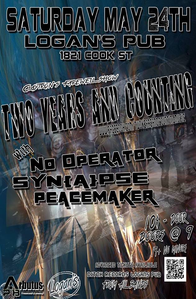 Two Years and Counting, No Operator, SYN{A}PSE, Peacemaker, Spoken By Ghosts @ Logan's Pub May 24 2014 - Jan 14th @ Logan's Pub