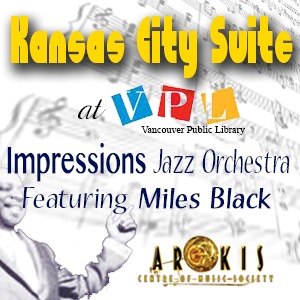 The Impressions Big Band returns to the Vancouver Public Library with guest pianist Miles Black to perform the entire Count Basie Kansas City Suite. Come to experience the music and learn about the historical and musicological significance of this great work.