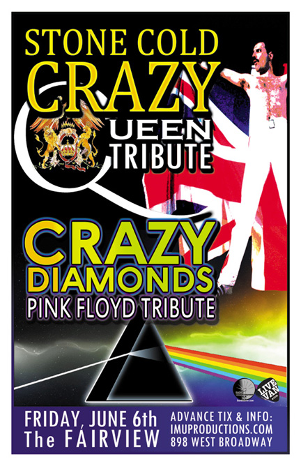 . Friday, June 6th IMU presents STONE COLD CRAZY Queen Tribute & CRAZY DIAMONDS Pink Floyd Tribute @ The Fairview, 898 West Broadway . Show 10pm / $10 cover