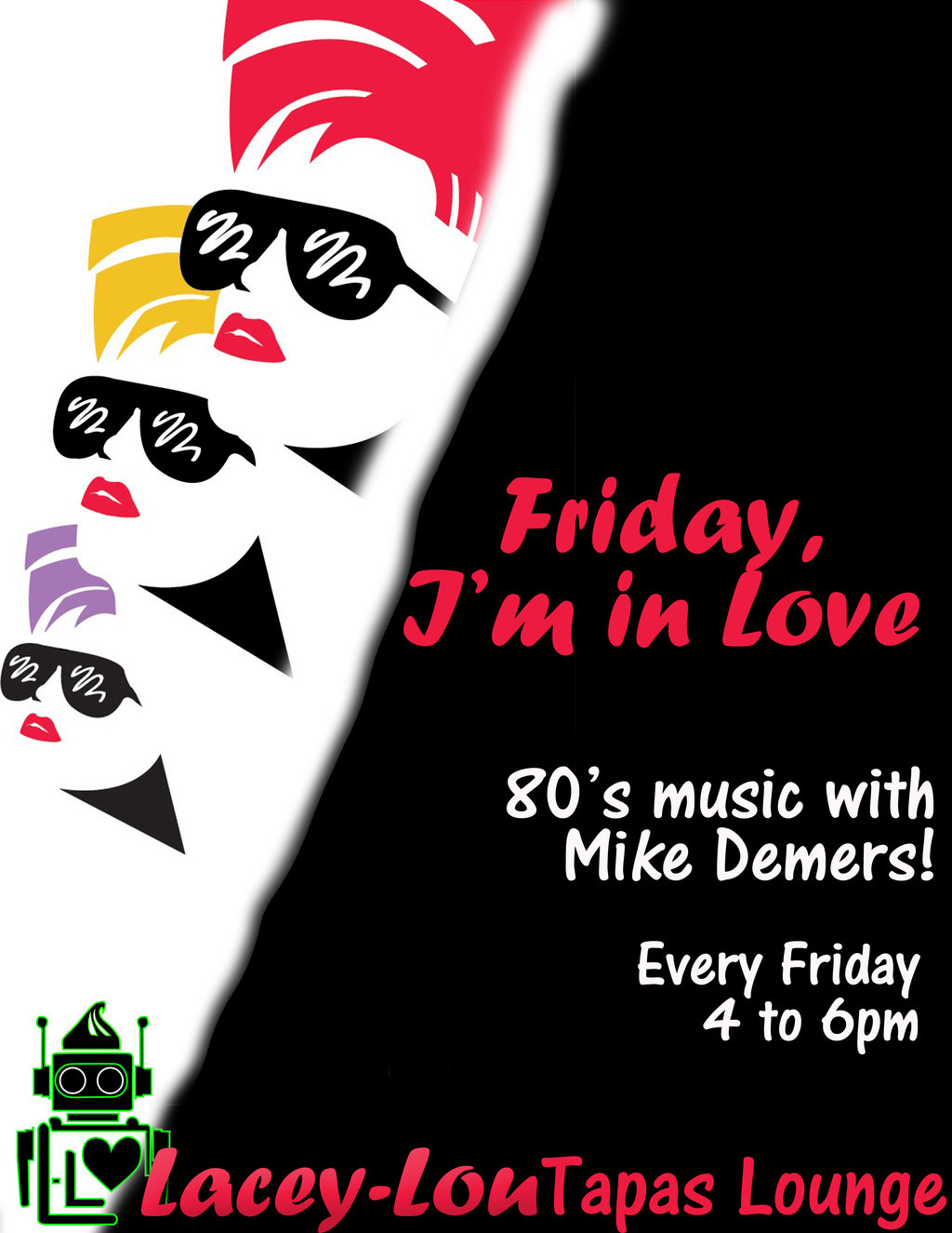 Celebrate Friday with 80's music played for you live at Lacey-Lou Tapas Lounge by the very talented Mike Demers!