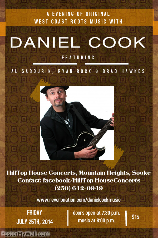 Original West Coast Roots Music: Daniel Cook, Al Sabourin, Ryan Rock, Brad Hawkes @ HillTop House Jul 25 2014 - Feb 24th @ HillTop House