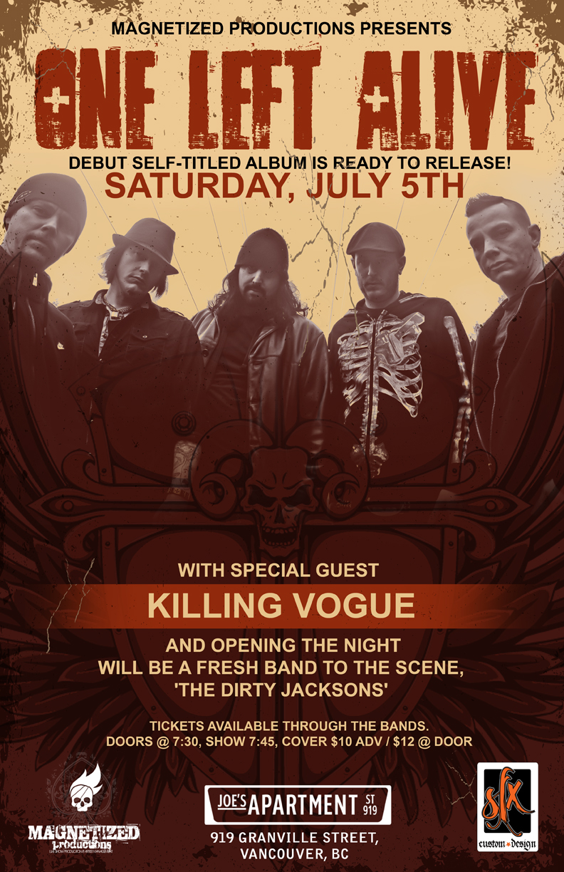 With Special Guest Killing Vogue & opening the night will be a fresh band to the scene, 'The Dirty Jacksons'.