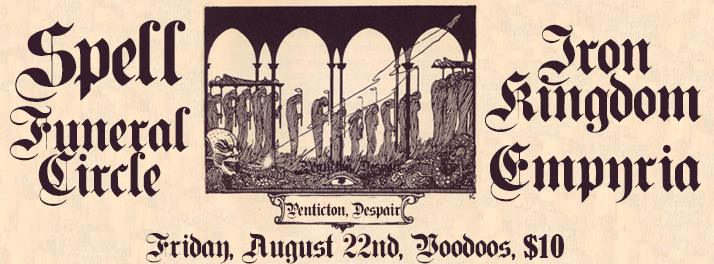 Spell, Funeral Circle, Iron Kingdom, T. B. A. @ Voodoos Aug 22 2014 - Feb 4th @ Voodoos