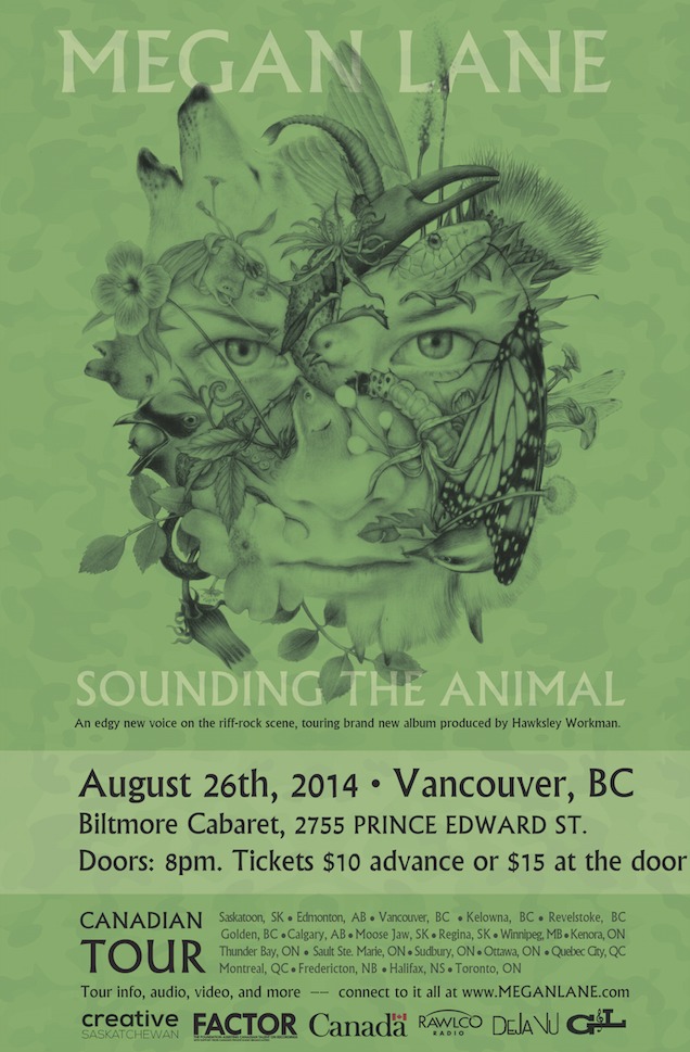 By tooth and claw, Megan Lane emerges as one of Canadas best guitarists with her latest release Sounding the Animal. Produced by the deft hand of Hawksley Workman, Lanes cut-to-the-bone guitar solos and unbridled voice are set loose amidst the analog tones of classic rock and the punchy synthetic textures of today. Dealt with acuity at every level of its creation, Sounding the Animal includes two co-writes with Workman and one with Canadian underground indie music hero Rae Spoon, and was mixed by Matt Dematteo and mastered by SENSEI. The albums artwork was drawn by internationally exhibiting artist Zachari Logan and is reflective of the wild spaces and untamed personalities referred to in the record.