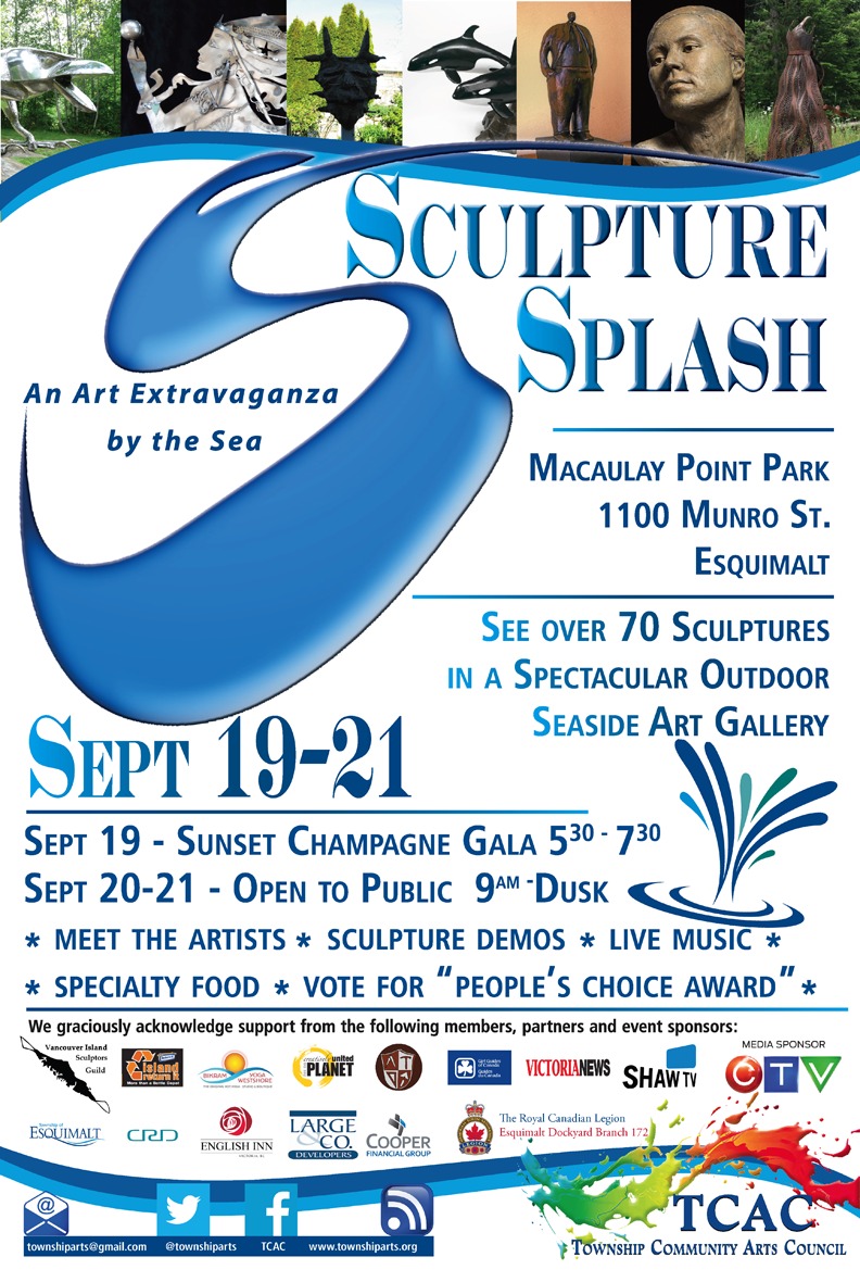 Township Community Arts Council presents “Sculpture Splash, An Art Extravaganza by the Sea ”, a two-day outdoor arts and cultural event at Macaulay Point Park in Esquimalt, BC. Sculpture Splash will transform our coastal walkway for one weekend into a seaside open-air dimensional art gallery.