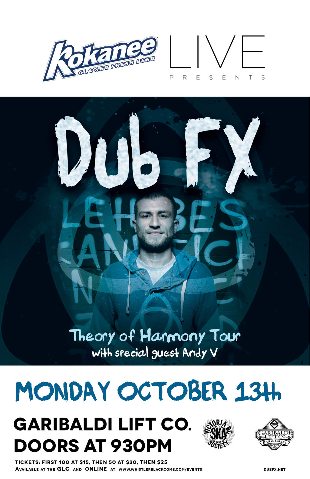 We're excited to announce that we'll be presenting Dub Fx with Andy V at Garibaldi Lift Co (GLC) - Whistler on Monday, October 13th!