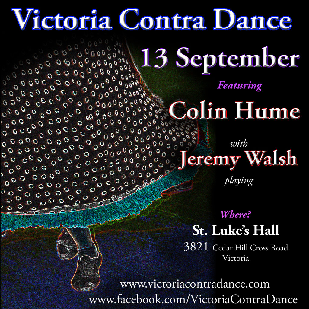 We're celebrating our season-opening dance with a special guest caller here from England — the renowned Colin Hume—calling to the lively tunes of Jeremy Walsh and company. Learn on the spot with prompts from the caller. Everyone welcome, beginner friendly, no partner required—learn the moves at 7:00, dancing starts at 7:30.