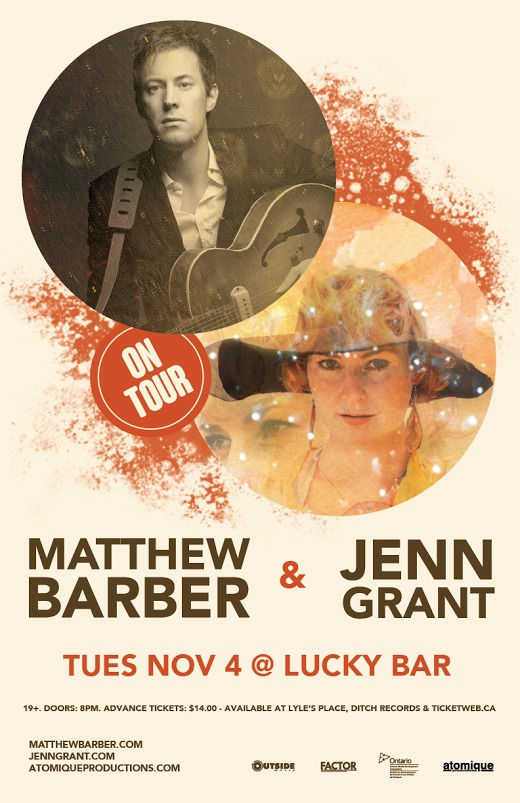 MATTHEW BARBER & JENN GRANT Tuesday, November 4th Lucky Bar, Victoria Doors: ...