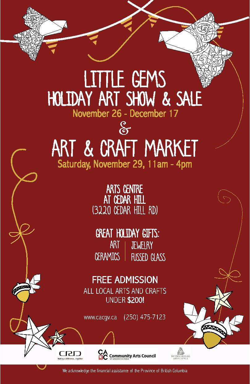 Holiday Art & Craft Market to take place on Saturday, November 29th at the Arts Centre at Cedar Hill in combination with the Small Works Show