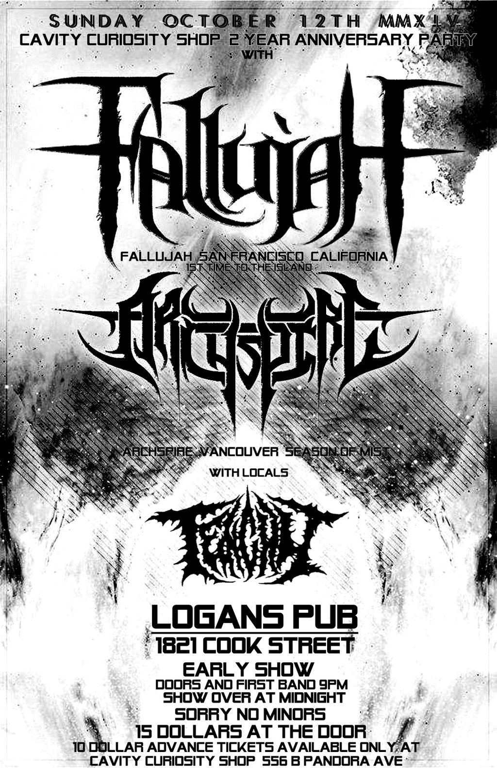 $10 ADVANCE TICKETS available NOW only at CAVITY Curiosity Shop - 556 B PANDORA (Limited to 100 tickets!)
