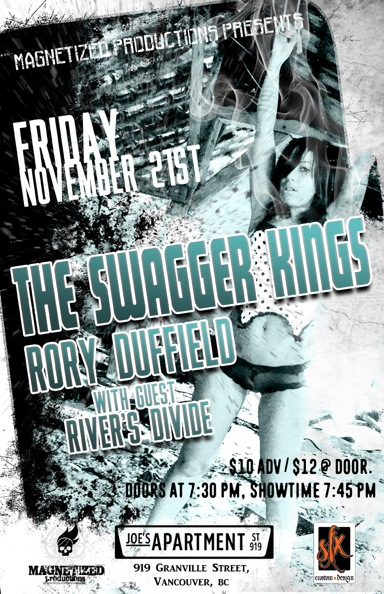 Magnetized Productions Present: Friday, November 21st - The Swagger Kings, Rory Duffield with Guest River's Divide. at Joe's Apartment, 919 Granville Street, Vancouver' $10 Adv / $12 @ Door.