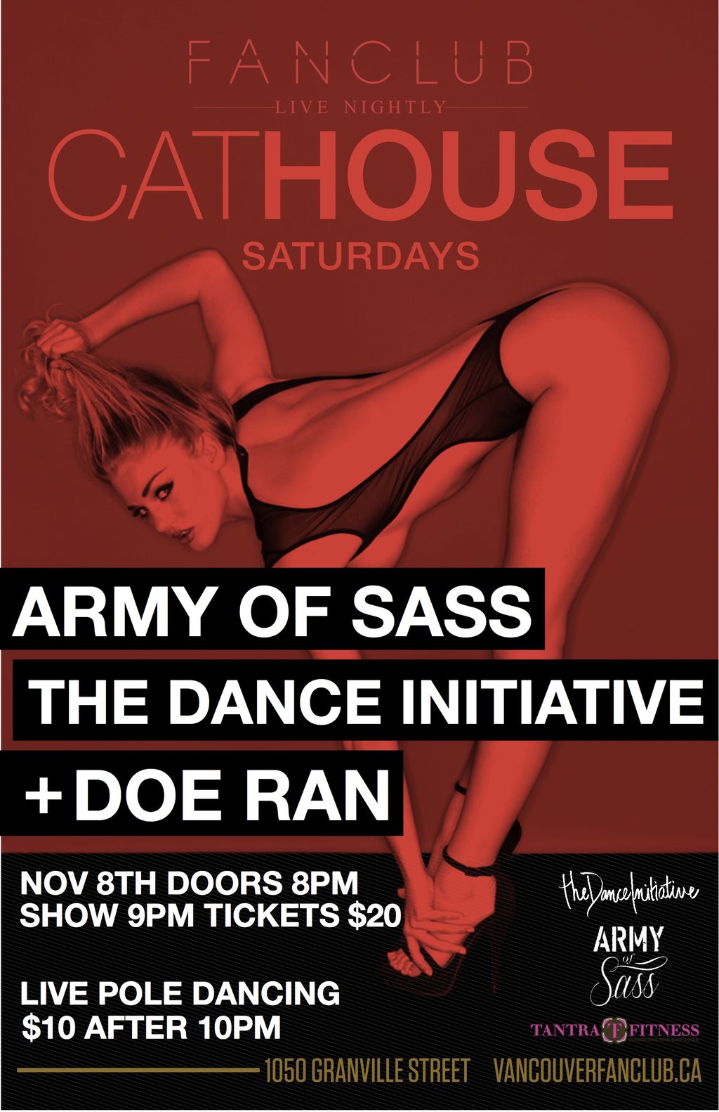 CatHouse Saturdays: Doe Ran, Army of Sass , The Dance Initiative, Tantra Fitness @ Vancouver FanClub Nov 8 2014 - Dec 25th @ Vancouver FanClub