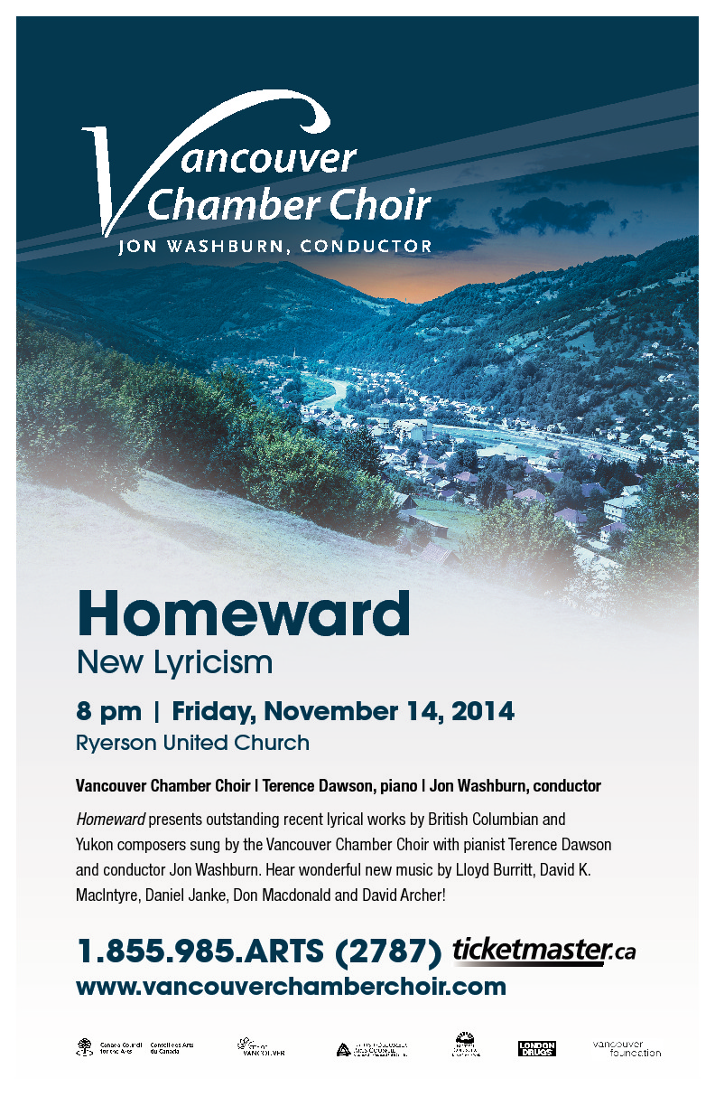 HOMEWARD New Lyricism: Vancouver Chamber Choir, Jon Washburn (conductor), Terence Dawson (piano) @ Ryerson United Church Nov 14 2014 - Feb 24th @ Ryerson United Church