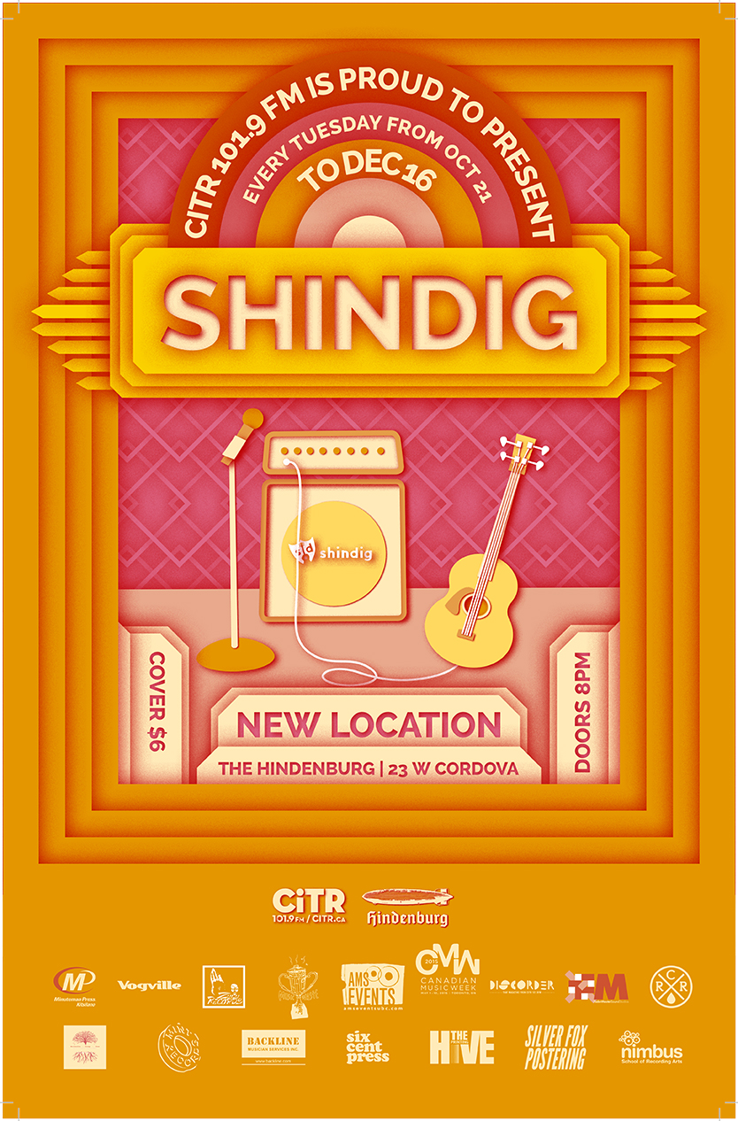 Shindig! is CiTR’s 3o year old annual band competition, promoting new, local music. 27 bands compete for great prizes! Bands performing in semis night three are yet to be decided! Come to the Hindenburg, with cheap drinks, jokes for beer and free pool.
