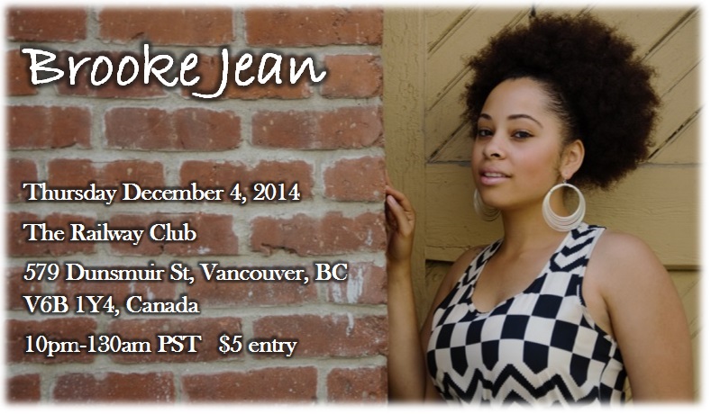 Join Los Angeles based spoken word artist Brooke Jean at the Railway Club north stage in Vancouver. Enjoy hip hop and jazz influenced music in song format with a touch of inspiration. Hip hop music will be playing all night on the main stage.