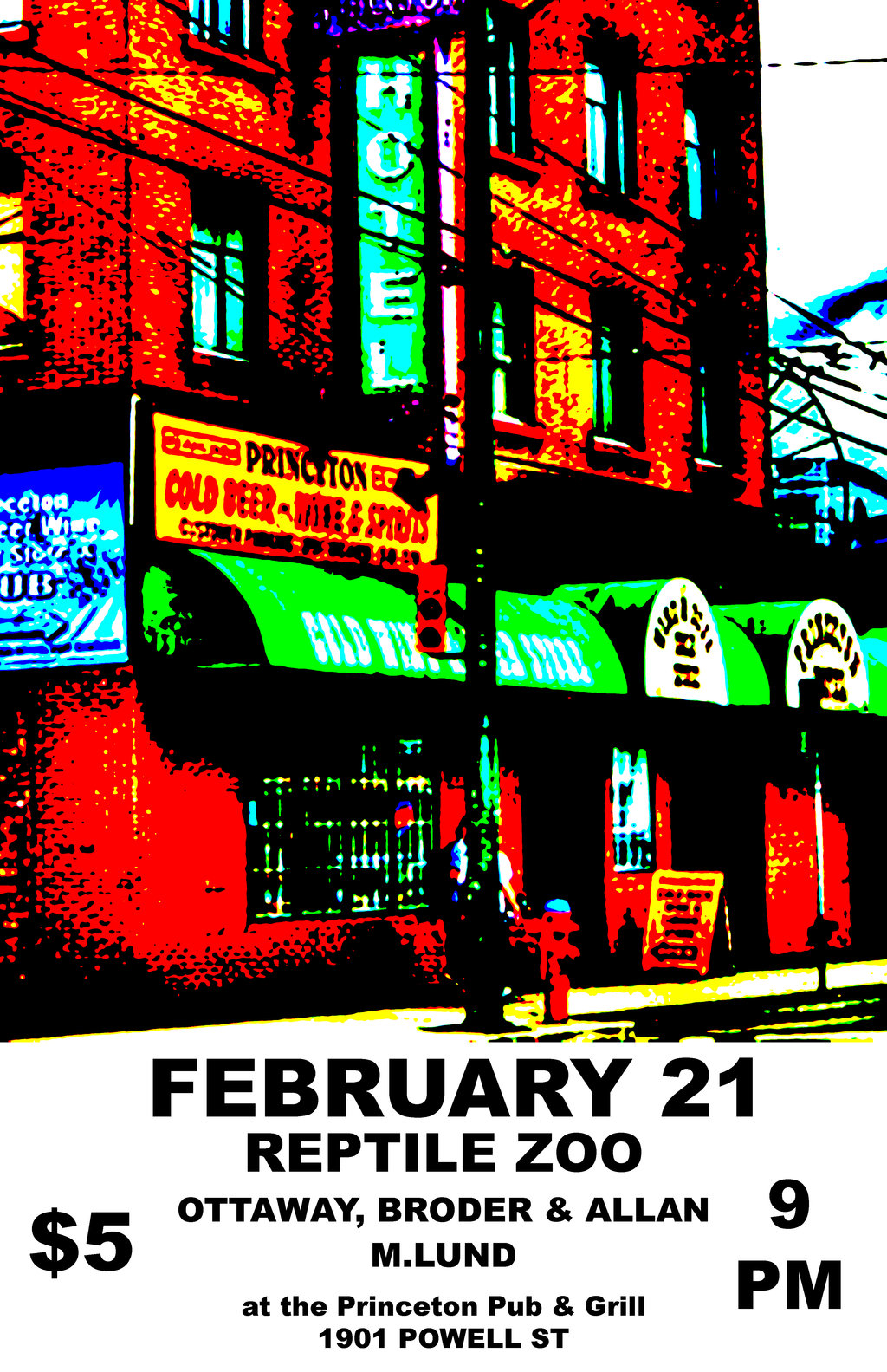Reptile Zoo, Ottaway, Broder, Allen, M.Lund @ Princeton Pub Feb 21 2014 - Jan 14th @ Princeton Pub