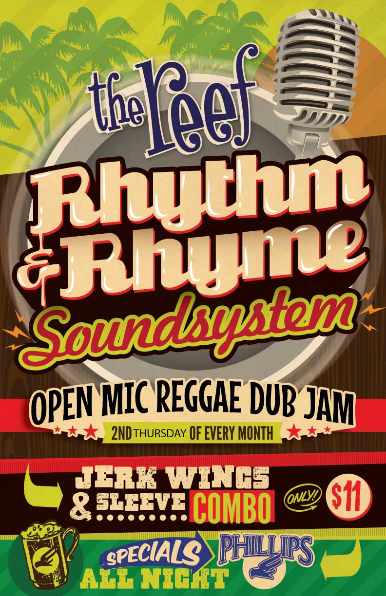 Rhythm and Rhyme Soundsystem: Open Mike Dub Jam  @ The Reef Jan 8 2015 - Jan 18th @ The Reef