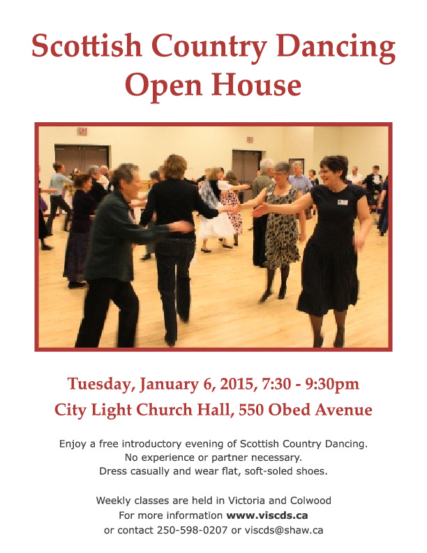 Join the Van Isle Scottish country Dancers for a free evening of Scottish country dancing. No partner Necessary. Dress casually and wear soft-soled shoes. Learn more about us at www.viscds.ca