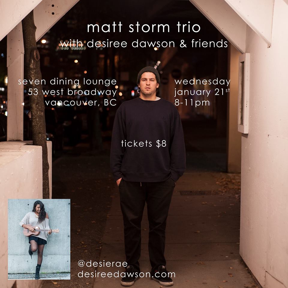 Matt Storm Trio , Tyson McIllroy , Jayson Dean, Desiree Dawson @ Seven Dining Lounge Jan 21 2015 - Jan 8th @ Seven Dining Lounge