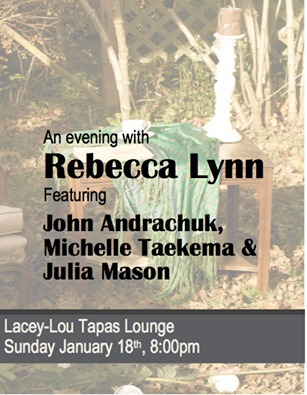 Rebecca has been performing around Victoria and mainland/interior BC for the past five years. She has collaborated with local artists and bands including Man Made Lake, Awake in the West, Rob Armstrong and Lisa Nixon. She is currently playing with John Andrachuk and Michelle Taekema and together they bring a more lively folk/indie sound with hints of country. Rebecca has also joined local up and coming band Inez Pearl, recordings and show dates to be announced this spring!