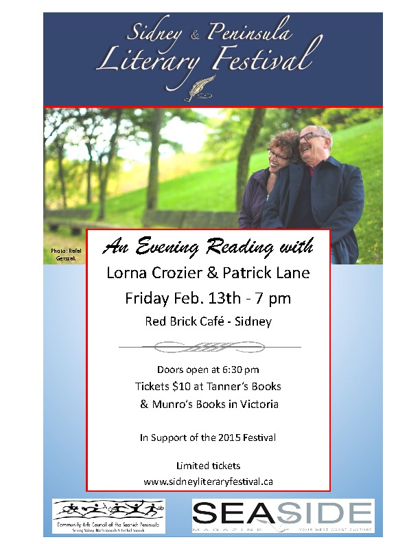 The Red Brick series features local authors and acts as a fundraiser for the Oct. 2-4, 2015 Sidney & Peninsula Literary Festival. Celebrate Valentine’s Day early with these two distinguished authors. 50-50 draw and live musicians too!