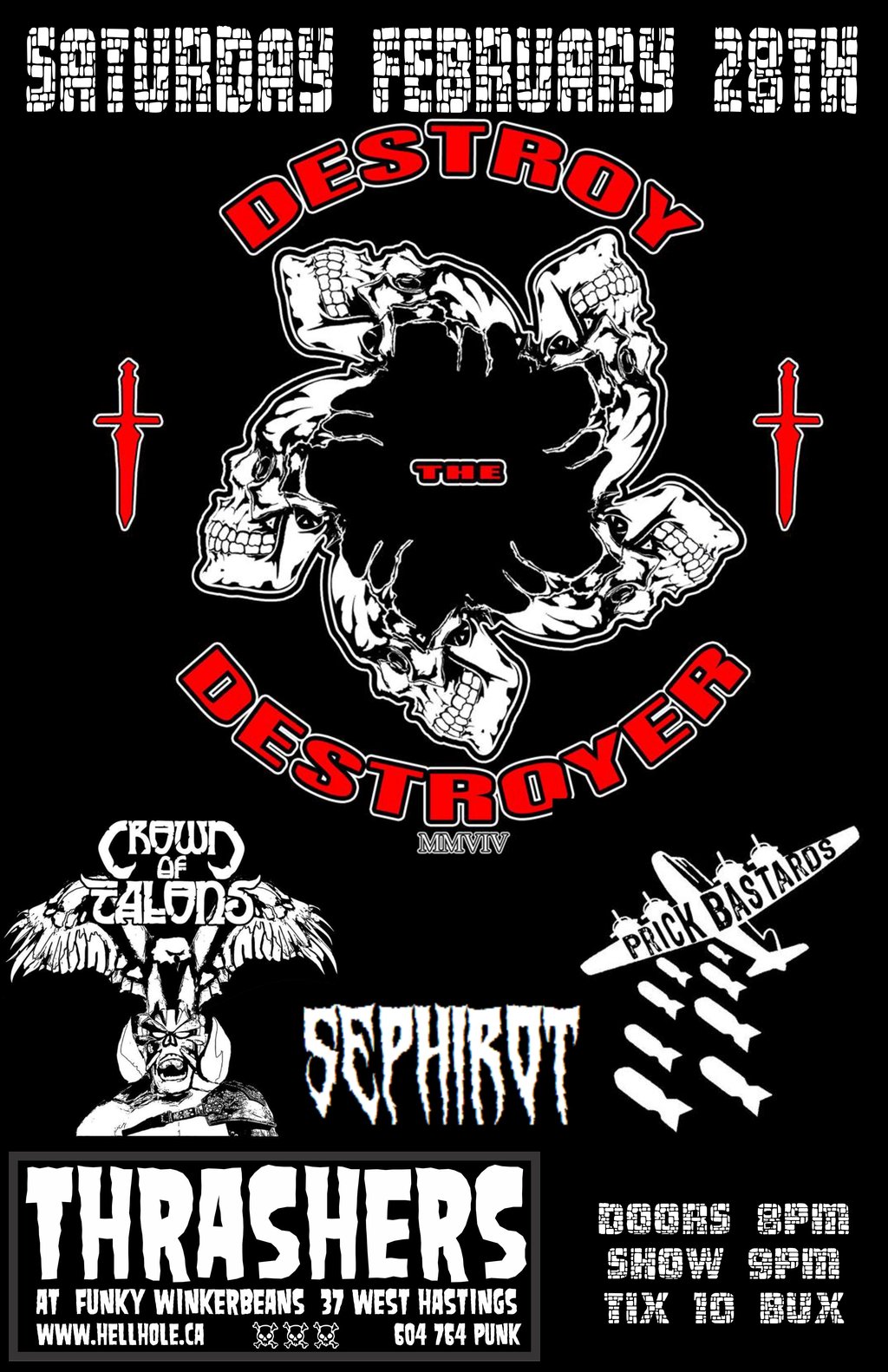 Destroy the Destroyer , Crown of Talons, Prick Bastards, SEPHIROT @ Funky Winker Beans Feb 28 2015 - Feb 10th @ Funky Winker Beans